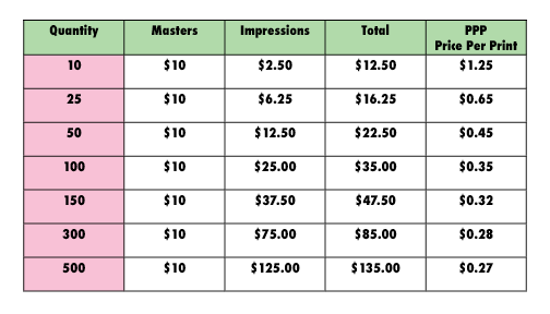 Standard rates are $10 per master and $0.25 per impression (per master).